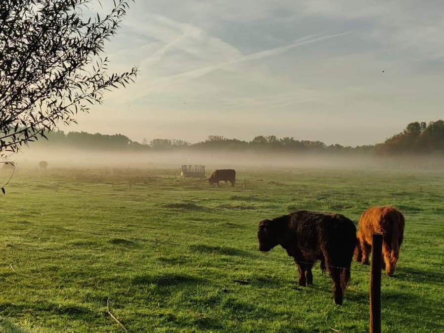 Auf dem Bruchgelände befinden sich seit einigen Jahren Schottische Hochlandrinder, die sich bestens zur Beweidung von Naturschutzflächen eignen. Sie sind ganzjährig im Freien und durch ihr Verhalten lassen sie ein Mosaik unterschiedlicher Biotope entstehen.