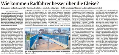 Der Bericht der CDU zu dem Thema "Radwegquerung" aus der letzten Gemeinderatssitzung bedarf einer Ergänzung. Die Sachverhalte, wie diese von der CDU dargestellt wurden, entsprechen zu Teilen nicht der Realität.