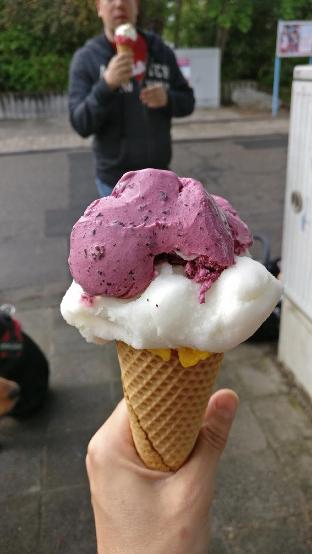 Raymund hat eine Runde leckeres Eis bei "Zeitgeist" spendiert, diese Kalorien nach der sportlichen Runde durften sein. Es war lecker und: Aber bitte mit Sahne!